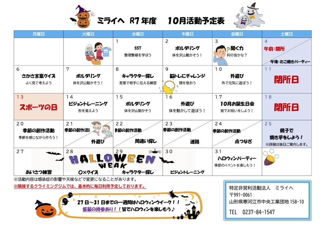 開所日:月曜日〜土曜日